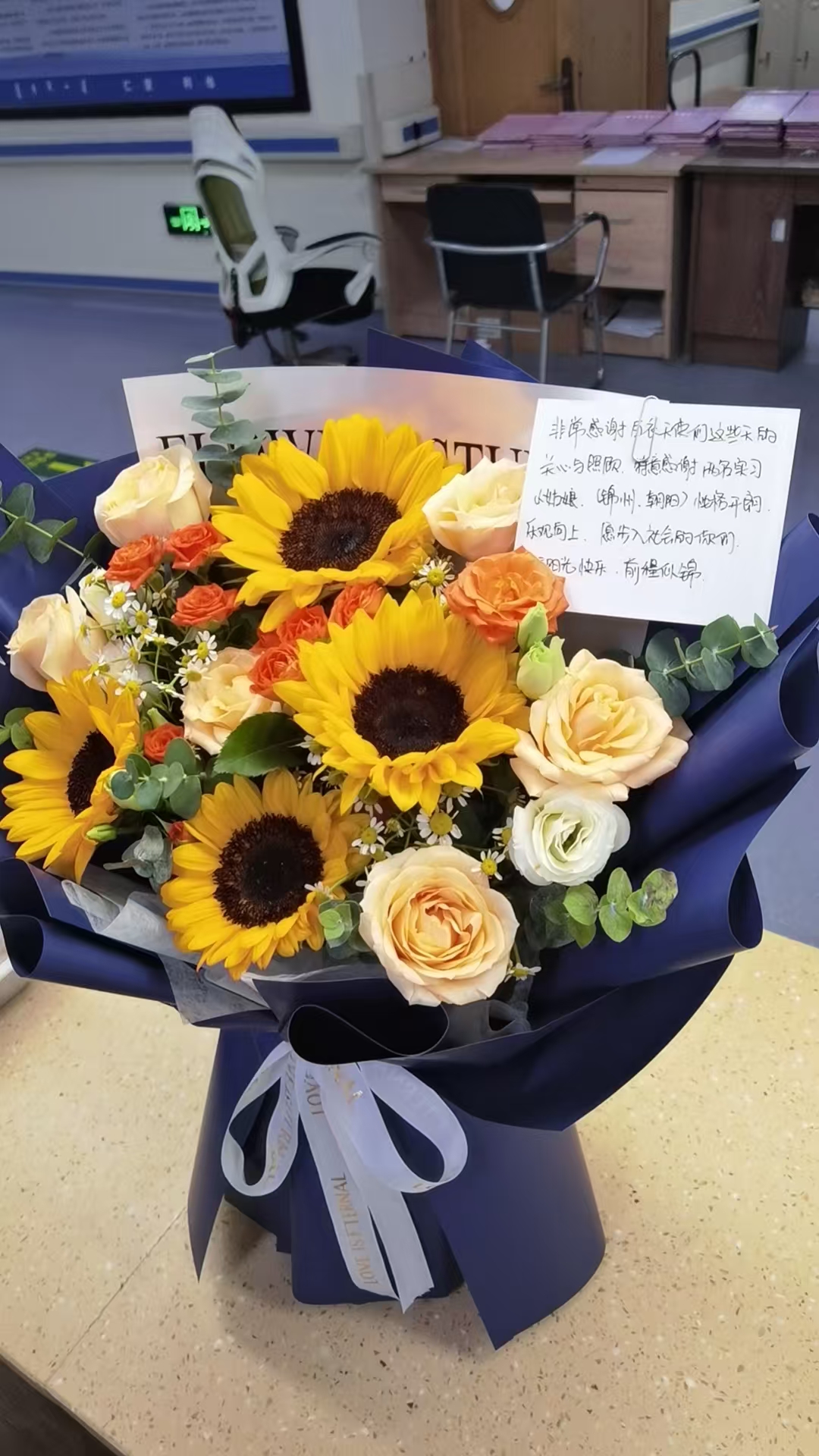近日,辽宁省蒙医医院六疗区患者张女士及家属专程为医护人员送来鲜花与手写感谢卡。卡片中写道:“非常感谢白衣天使们这些天的关心与照顾,特意感谢两位实习小姑娘!(锦州、朝阳)性格开朗、乐观向上,愿步入社会的你们阳光快乐、前程似锦!”字里行间满满的感动与祝福。一束鲜花,一句叮咛,凝结了患者及家属最真挚的肯定。这两位“实习小姑娘”,就是我校卫生健康学院23级护理专业的实习护士闫硕和李红晨。