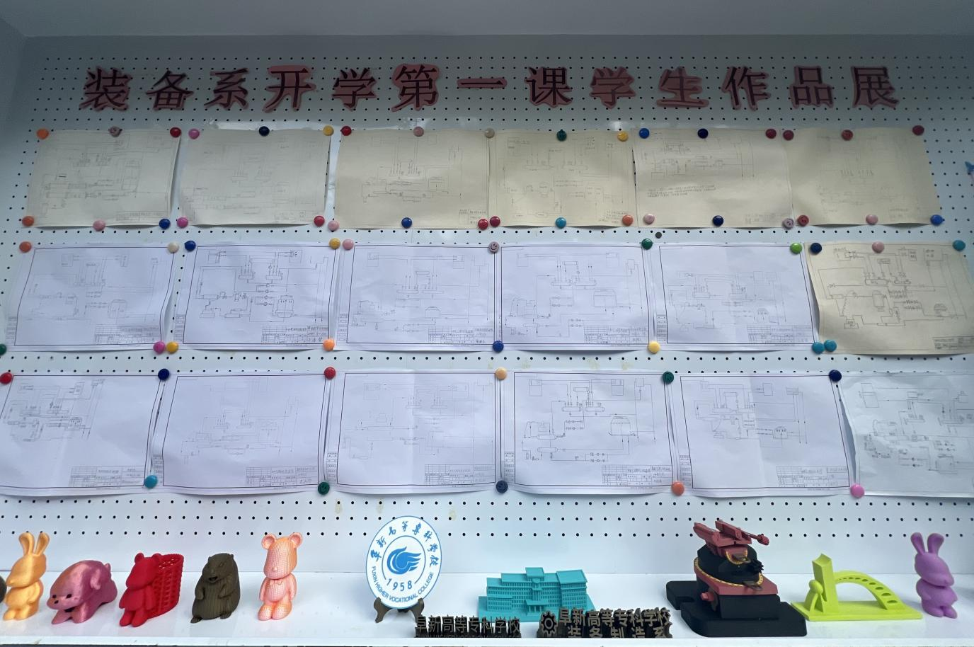 本次课程围绕“中央空调系统组成与工作原理”这一核心知识点展开,教学依托学校的中央空调实训台进行。该实训台以真实民用中央空调为原型缩小搭建,清晰呈现冷热源系统、冷却水循环、冷冻水循环、热水循环、风系统、电控系统等部分。授课时,教师结合实训台实物,逐一讲解各部件的功能、系统流程;针对制冷剂、水、风等不同系统,通过教师讲解,小组讨论,组长带领组员一起研究分析解决问题,然后对每一名学生进行一对一检测。课堂上,学生们针对中央空调实训台绘制系统草图,课后根据绘制的草图绘制3号图纸,将优秀的作品图汇总,并在学校展柜展览。