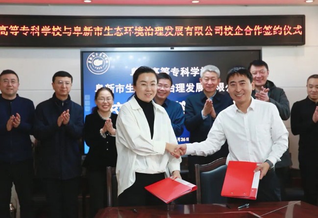 12月26日,阜新高等专科学校与阜新市生态环境治理发展有限公司举办校企合作签约仪式。阜新市国资委副主任张群昆,阜新生态集团董事长徐强、副总经理安源,阜新市生态环境治理发展有限公司总经理宋海涛、副总经理项坤,阜新高专校长李妮、副校长魏彤光以及学校相关职能部门负责人、专业带头人共同出席仪式,仪式由副校长魏彤光主持。