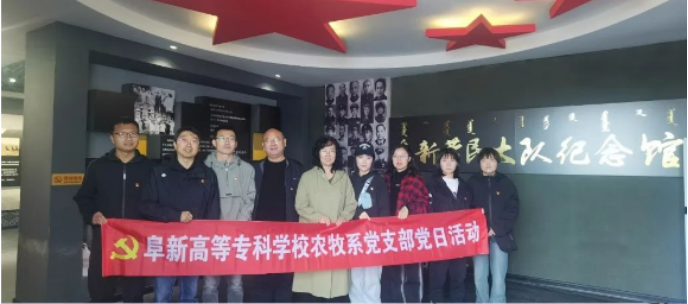 在阜新蒙民大队纪念馆参观,全体党员教师了解阜新红色革命历史,追寻红色足迹,进一步引导全系党员及教师在基层实践中了解阜新三农情况,不断增强服务地方经济的归属感及荣誉感,吸引青年教师立足职教建功立业