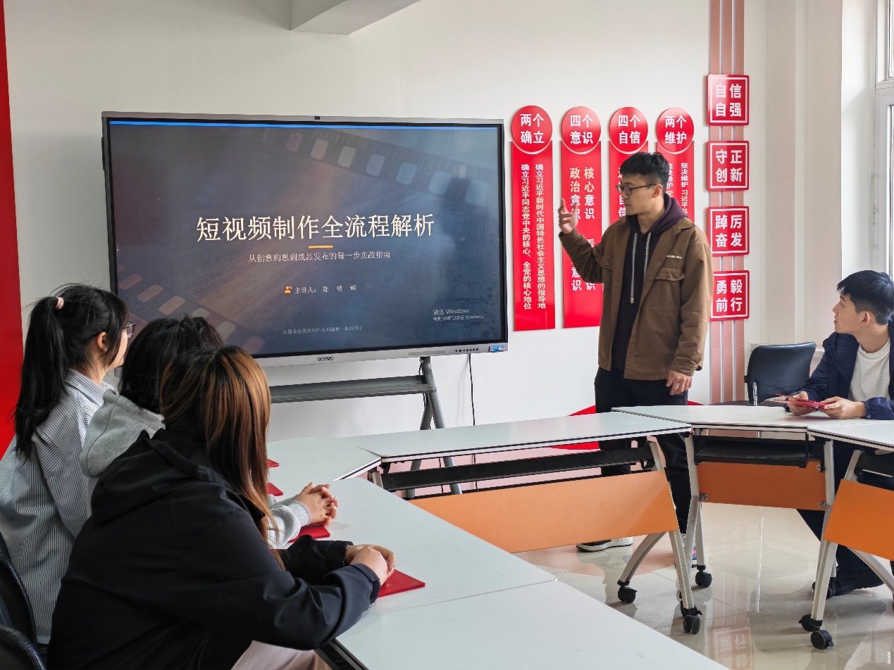 成立仪式后,融媒体社首期公开课正式开讲。指导老师陈明辉和张恒瑞为全体社员开展专业授课,详细讲解了短视频制作全流程,让社员们对融媒体视频制作建立了初步、系统的认知,有效激发了大家的学习与创作热情。