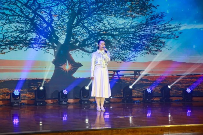 歌声与诗声交织,音画与诗情相融。《铭记》《一路生花》的动人旋律点燃全场热情,让春日校园的诗意与青春的热情尽情绽放。