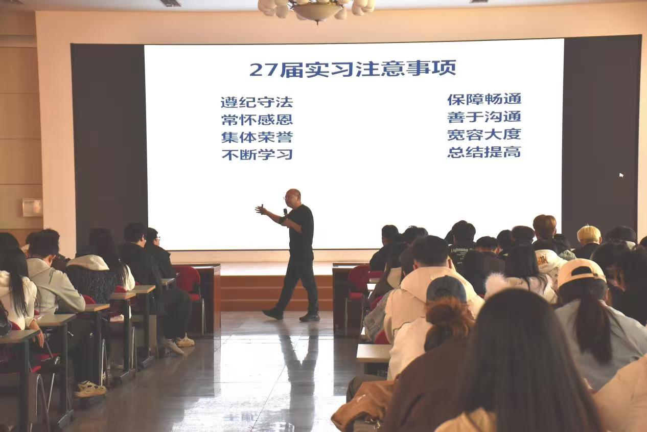 大会最后,为全体实习生送上青春寄语,鼓励大家在实习过程中牢记 “自律第一、沟通第一、提高第一” 的准则,常怀感恩之心,学会善于沟通、宽容大度,在岗位实践中不断学习、总结经验、提升能力,以奋斗之姿书写无悔的青春记忆。