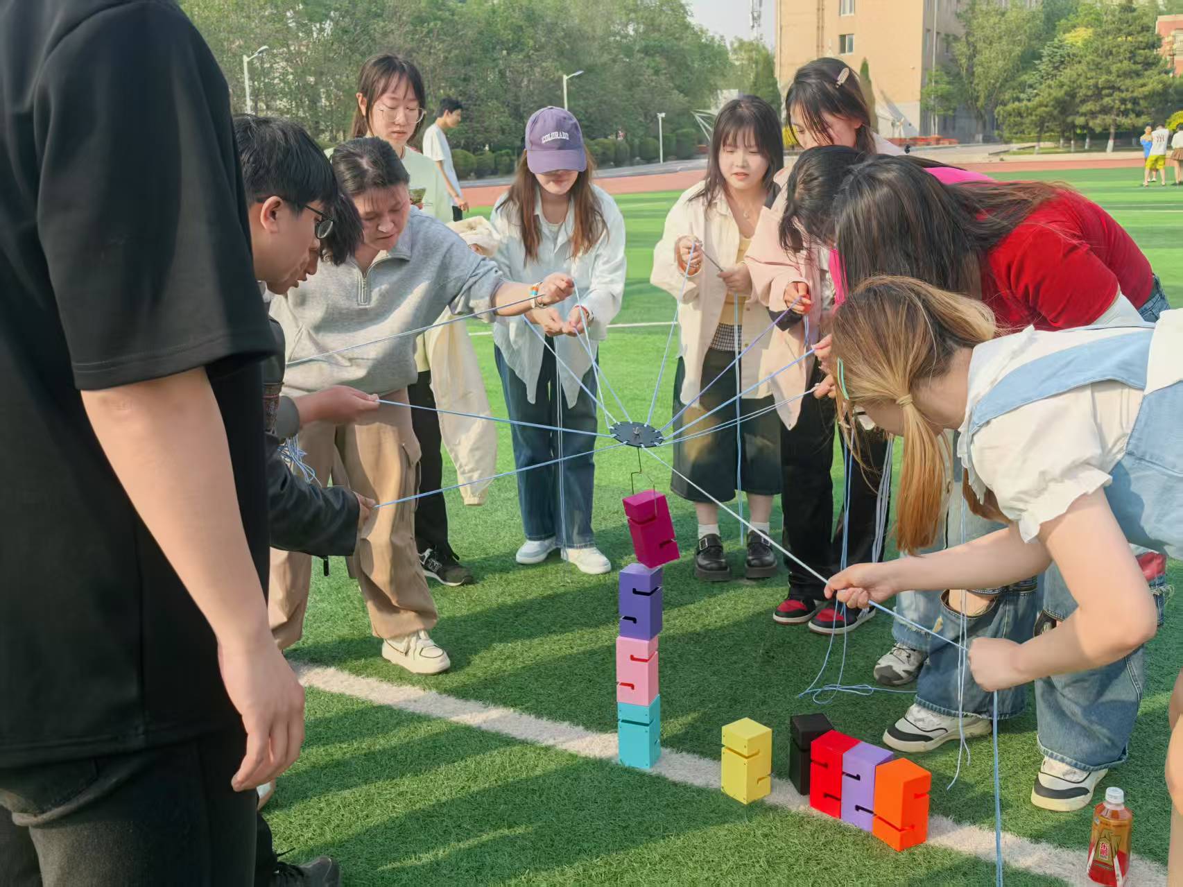 组织百人心理素质拓展训练,通过“珠行万里”“合力筑塔”“快乐向前冲”等团队项目,让学生在体能锻炼中培养抗压能力与协作精神。