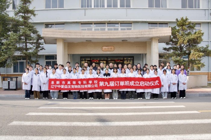 4月8日,阜新高等专科学校与辽宁中爱益友宠物医院有限公司联合举办的第九届宠物医疗方向订单班开班仪式顺利举行。来自深圳沐宠、辽宁中爱、云起网络等宠物诊疗企业的专家和我校农牧系的专业教师,就行业发展态势、企业岗位标准要求、订单班培养课程体系、考核优化和实习就业等订单班学员关心关注的问题进行了详细介绍和说明,让订单班学生明确了岗位认知、熟悉了培养路径,为后续全身心投入学习与实操专项训练筑牢基础。
