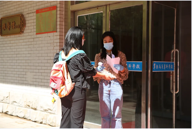 外省籍返校学生到达,在校门外警戒线外间隔1米站排等候,学校保安人员组织有序入校报道。报到场地设有消毒区、测温区、复检区、临时隔离区、各系报到区和核酸复检区每个工作区间隔5米以上,临时隔离区周围5米禁止人员接近。