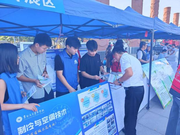 阜新高等专科学校科普团队围绕制冷专业,精心筹备并制作了系列科普展板。展板通过生动形象的图片素材与简洁明了的文字说明,系统向市民展示了制冷专业的发展历程、核心领域及未来发展方向,助力市民直观了解该专业的专业建设与学生就业场景。活动现场,科普团队还准备了大量空调和电冰箱使用维护知识的科普小册子,向市民免费发放,进一步拓宽科普知识的传播覆盖面。科普团队的教师与学生耐心为过往市民开展讲解服务,针对市民提出的制冷设备使用疑问和维护技巧等问题,逐一进行细致解答,确保市民能够清晰理解相关知识。