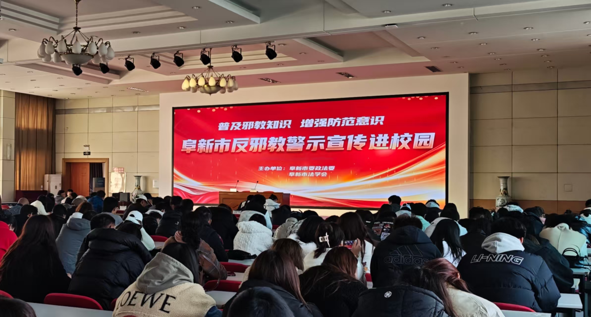 为深入推动反邪教宣传教育,增强师生防范意识,筑牢校园安全防线,近日,“阜新市反邪教警示宣传进校园”活动在阜新高专顺利举行。市委政法委、市委统战部、市委宣传部、市公安局、市教育局、辽宁工程技术大学、各县区政法委等相关单位负责人,以及全市各中小学校联络员与阜新高专学生代表共同参加了本次活动。