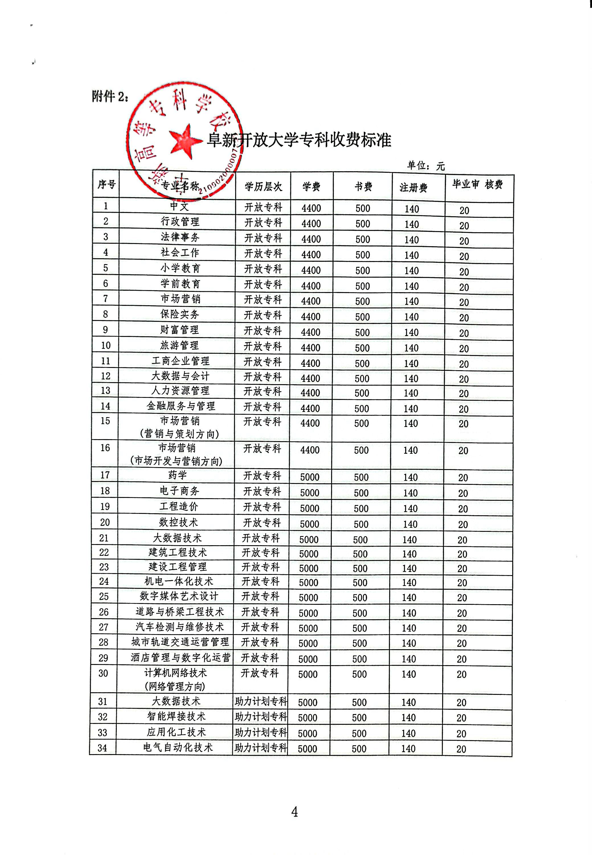 阜新高等专科学校成人教育学院收费标准公示