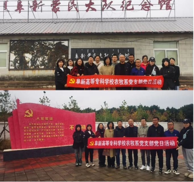在阜新蒙民大队纪念馆参观,全体党员教师了解阜新红色革命历史,追寻红色足迹,进一步引导全系党员及教师在基层实践中了解阜新三农情况,不断增强服务地方经济的归属感及荣誉感,吸引青年教师立足职教建功立业