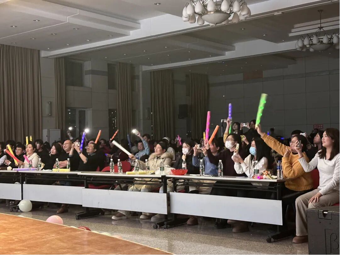 晚会开场,报告厅内张灯结彩,五彩的气球、绚丽的彩带将现场装点得格外喜庆。大家怀揣着期待有序入座,共同沉浸在这欢乐且充满希望的氛围之中。