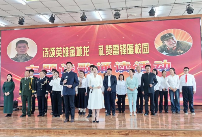 “诗颂金城龙英名 礼赞新时代雷锋”主题诗歌诵读环节,现场气氛庄重而热烈。配乐诗朗诵《你是新时代的雷锋》《永恒的青春传美名》、《人间最真一束光》、《你是一粒种子》、情景诗朗诵《冰河作证 青春永生》深情讴歌英雄短暂而光辉的青春岁月;歌曲《你就像雷锋那样》、快板书《冰河壮歌》,礼赞英雄壮举与高尚品格;歌曲《别忘了当初为何出发》,传递出传承榜样精神、坚守初心信仰的坚定信念。最后,展演在歌曲《英雄赞歌》中圆满落幕,整场活动深情抒发了对英雄金城龙的崇高敬意,真挚礼赞新时代雷锋精神。