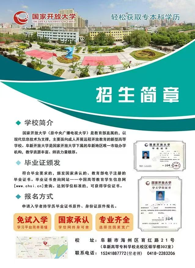 2022年秋季阜新开放大学招生简章
